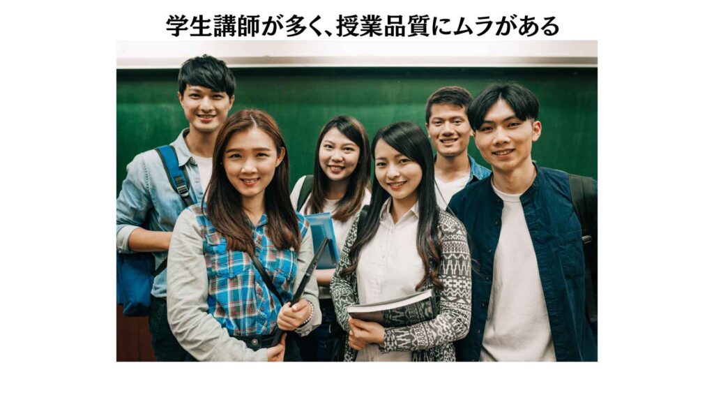 - 学生講師が多く、授業のたびに先生が変わった・・・