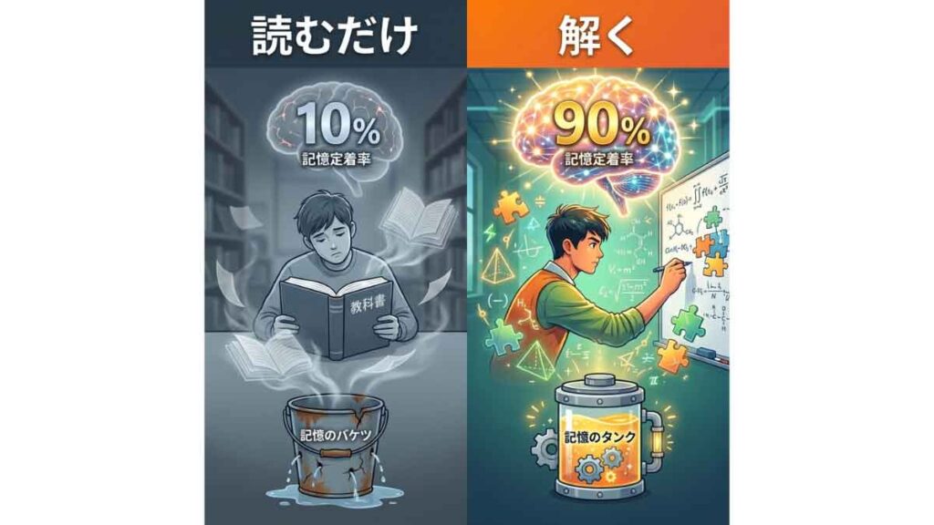 カーネギーメロン大学(CMU)の研究が警告するのは、教科書や参考書をただ読むだけの学習の危険性です。読むだけ、観るだけの学習は、脳に「わかったつもり」という錯覚を与えますが、本番で使える知識としては定着しません。