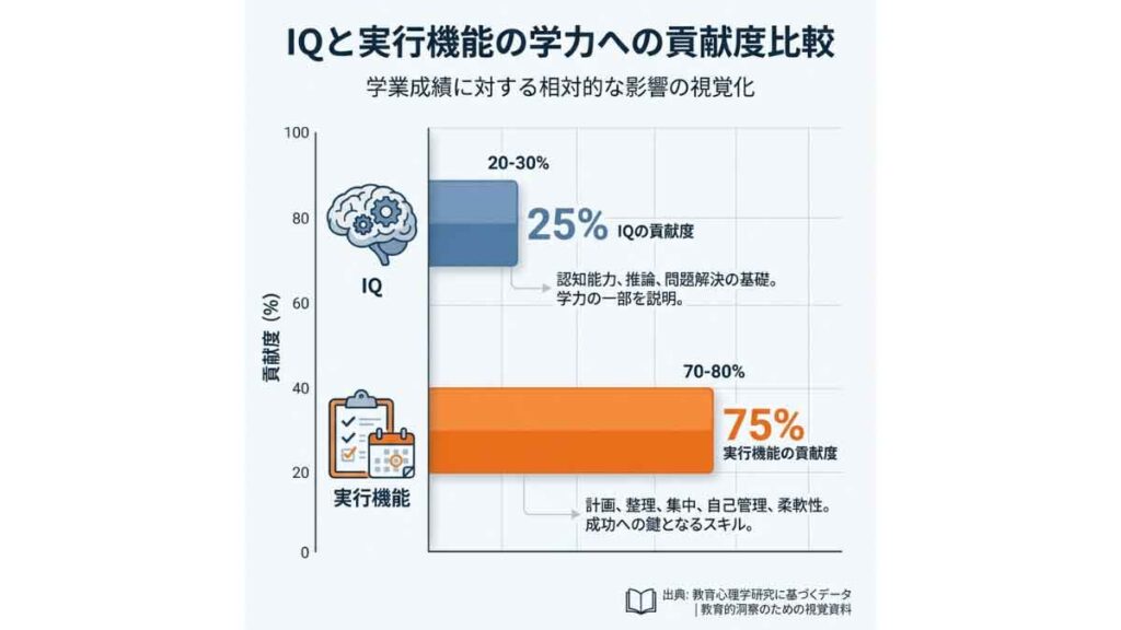 5歳から17歳の2,000人以上を対象とした研究において、実行機能がIQよりも学業成績(算数・読解)の強力な予測因子であることが証明されました。