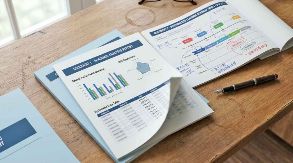 このロードマップには、実技教科の配点を味方につける逆転マトリクス、認知科学に基づいた忘れない復習スケジュール、そして数年前まで遡り、基礎を組み直すための具体的なステップが刻まれています。